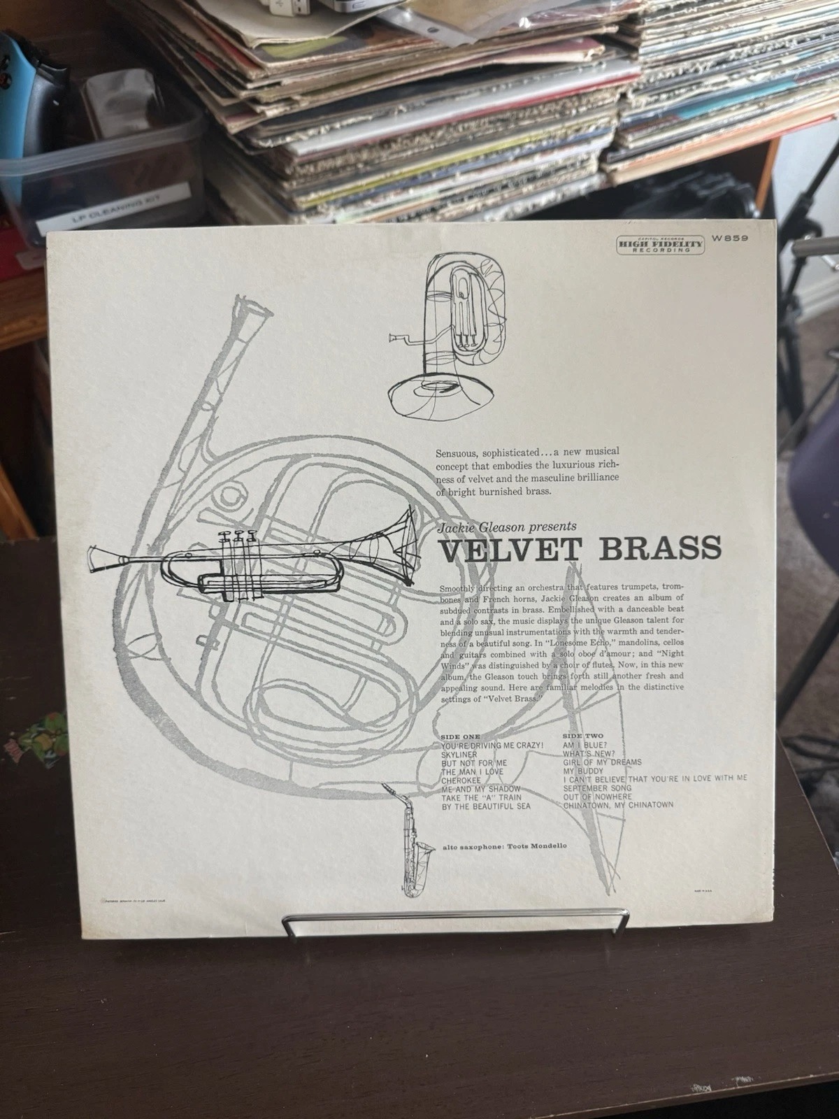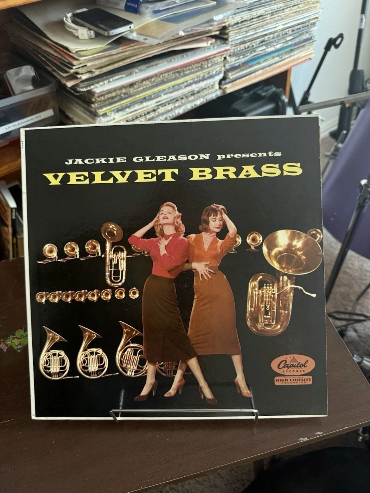 The product is a vinyl EP titled “Jackie Gleason Presents Velvet Brass” released by Capitol Records. The record features a brass style, with a shaped cover made of vinyl material. This unique and collectible item appeals to fans of new age music and those interested in the work of Jackie Gleason, offering a nostalgic listening experience on a classic format.